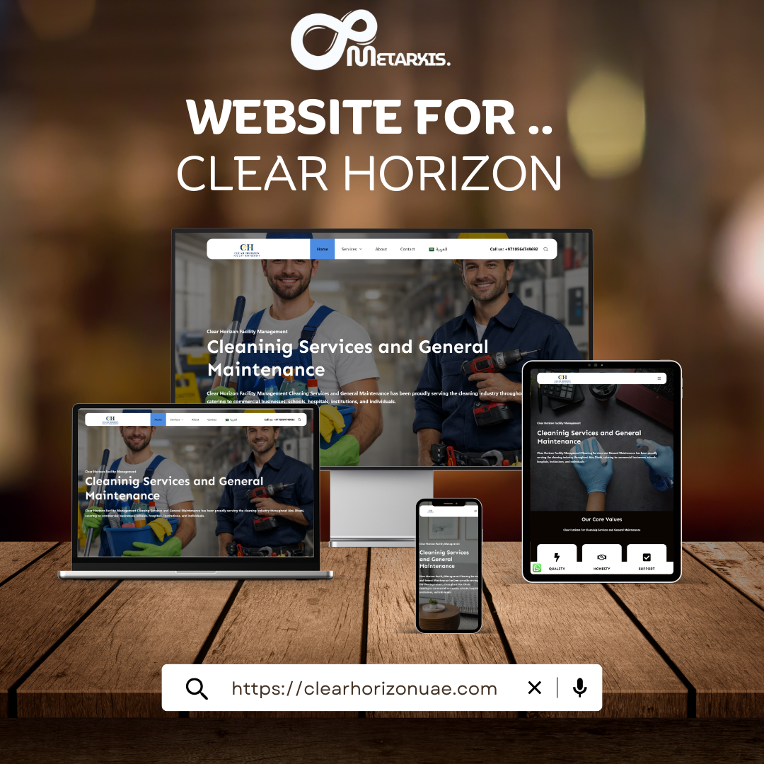 موقع "كلير هورايزون الإمارات" هو الموقع الإلكتروني الرسمي لشركة إدارة مرافق تقدم خدمات تنظيف وصيانة وحلول توفير القوى العاملة الاحترافية في جميع أنحاء أبوظبي. يعرض الموقع خدمات الشركة وقيمها الأساسية وباقات خدماتها بتنسيق منظم مصمم خصيصًا للشركات والمؤسسات والعملاء السكنيين.